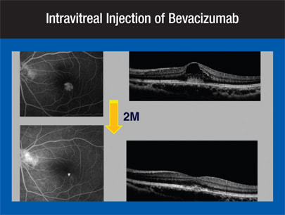 Figure 15. An age-related macular degeneration case is shown before and 2 months after bevacizumab (Avastin, Genentech) treatment.