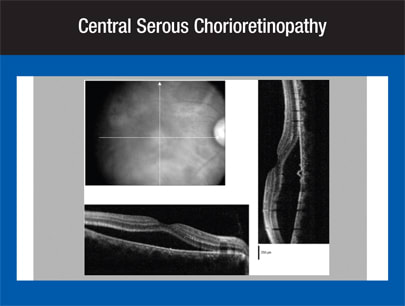 In a case of CSC, the RTVue-100 enables us to see exudation and, with the use of a B-scan, the translucent area as well. These cases almost always present with a translucent region. One case of CSC involved a patient who had the disease more than 5 years and presented with visual acuity of 20/200. The detached retina was somewhat thin. The lack of structure in the outer retinal layer suggested a poor visual prognosis.