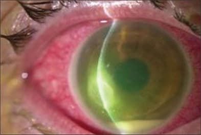 The subjective symptoms of endophthalmitis may include pain, photophobia, fever and decreased vision. Patients often present with the clinical findings of conjunctival hyperemia, chemosis, discharge, lid edema and erythema, associated corneal edema and infiltrate, anterior chamber reaction (mild in chronic cases such as that seen with the bacteria p. acnes, or in those patients with suppressed immunocompetency), or severe, demonstrating a fibrinoid reaction and/or hypopyon formation), and vitritis, rarely with an associated retinitis or papillitis. Most cases are identified within the first 4 to 7 days postoperatively. Though bacteria, fungi, viruses and even parasites have all been implicated, by far the most common underlying culture-proven etiology include gram positive microorganisms.