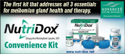 ■ Optimal meibomian gland health is easier for patients to achieve with the NutriDox Convenience Kit. The NutriDox Convenience Kit provides a 3-pronged approach to healthier meibomian glands. First, it contains 75 mg of doxycycline. The amount is reduced because the kit also contains TheraTears Nutrition omega-3 supplement with flaxseed/fish oil, which supports uninflamed eyelids. The third prong is the iHeat portable warm compress system — the first major breakthrough in warm compress technology. It provides a targeted warm-compress temperature for up to 5 minutes.