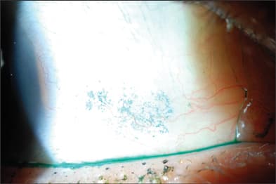 Lissamine green staining revealed mild dry eye that required pretreatment to achieve optimal results.