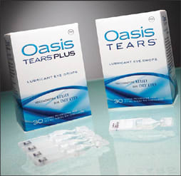 Oasis Tears (Oasis Medical, Inc., Glendora, Calif.) are glycerin-based lubricant eye drops that coat and moisten delicate ocular tissue for long-lasting relief of dry eye symptoms.