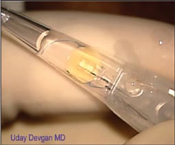 “iSert initially caught my eye because a preloaded lens can eliminate potential problems,” says Uday Devgan, MD, of Devgan Eye Surgery in Los Angeles. “It is loaded properly every time and maintains a clean and sterile environment. Additionally, when we grab a lens to load it into an injector, the optic is typically grabbed, and this can result in a focal defect,” said Dr. Devgan. “This doesn't happen with a preloaded lens because there is no need to touch it with forceps since everything is self-contained.” He says another advantage is that users don't have to assemble many parts. “With your typical lenses, you have to get the injector cartridge, which is disposable, the metal injector, which is not disposable and has to be sterilized, and the lens and then assemble it all.”