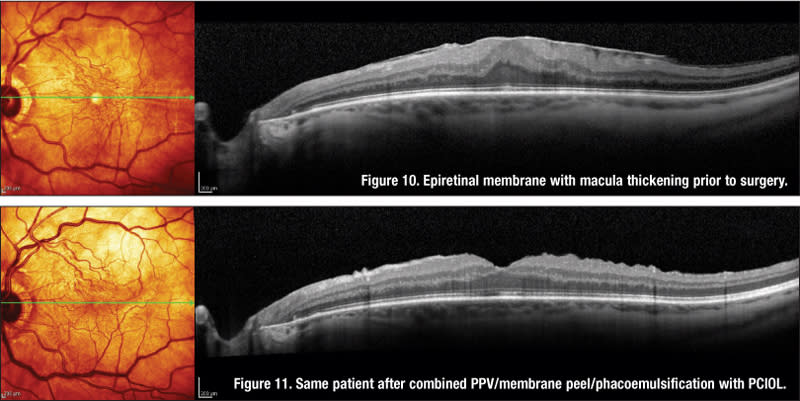 This case opens up the discussion of ERMs and how they influence the decision-making process in cataract surgery. It is really impossible to know the effect that an ERM has on the macular anatomy without OCT. Even with the images the SD-OCT provides, it can be difficult to correlate the macula changes with visual symptoms accurately.