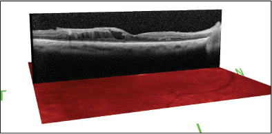 Figure 6. Subretinal fluid associated with SRN and submacula nevus.