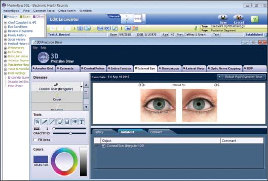 One unique feature of MaximEyes is a drawing tool that allows doctors to mark areas of concern directly onto an image in the digital record.