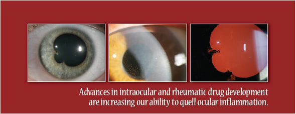 • In the pipeline: Biologics being developed and used for systemic inflammatory disease include B-cell blockers (rituximab), T-cell costimulation blockers (abatacept), and blockers of interleukin or interleukin receptors 1 (anakinra), 6 (tocilizumab), 11 (efalizumab), 17 (AIN457), and 12/23 (ustekinimab), among others. Many of these have been or will be studied for ocular inflammatory disease in the future.