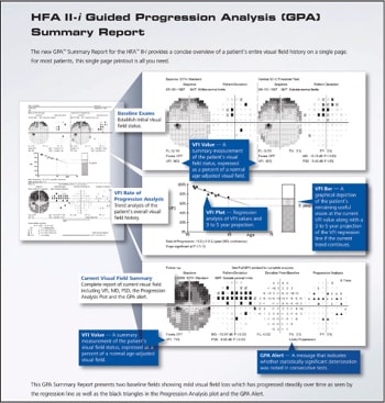 Other advantages, CZM points out, include new software reporting that offers guidance for severely depressed visual fields, and a new GPA algorithm that allows GPA analysis to be run on more patients immediately by allowing a mix of full-threshold and SITA exams.
