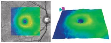 Figure 2. From the large amount of data obtained, the Cirrus HD-OCT reconstructs 2-D and 3-D thickness maps.