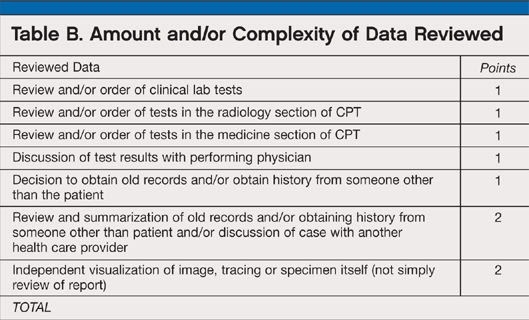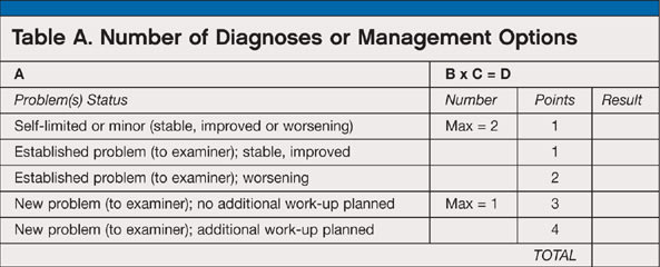 • Note the parenthetical comment “to the examiner” in Table A. This refers to the examiner, not the practice. For instance, in a group practice, if a retinal detachment patient is referred to a retinal subspecialist for evaluation and treatment, this is considered a new problem to the examiner.
