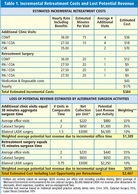 Retreatments are expensive emotionally and financially. Deserved or not, the need for them implies an imperfection in the vision correction program and thus damages its reputation and diminishes its profitability. While the emotional costs borne by patients and providers cannot be measured, the financial costs for each can at least be estimated using reasonable assumptions.