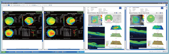 When I walk into this room and meet the patient, I can see that the topography looks good, but a glance at the OCT scans reveals that this individual has some edema in the retina. As it turns out, she actually has a neovascular membrane. I still complete my exam. I tell the patient that yes, she has cataracts, but I don't need to go into the lengthy discussion about cataract surgery and all the different lens options at this point because this patient needs to see a retina specialist. Having the information I need right in front of me at the start of the exam saves an enormous amount of time. |
