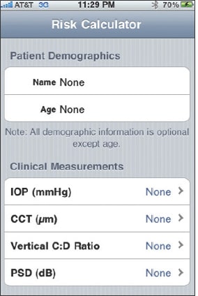 Clinically, I find the calculator most useful when I'm counseling an ocular hypertensive patient and I'm deciding on whether to institute or withdraw treatment — it is particularly useful in someone who has been treated in the past and risk calculations show that they are at very low risk (eg, a patient with thick cornea, healthy nerves and IOPs in the low 20s).