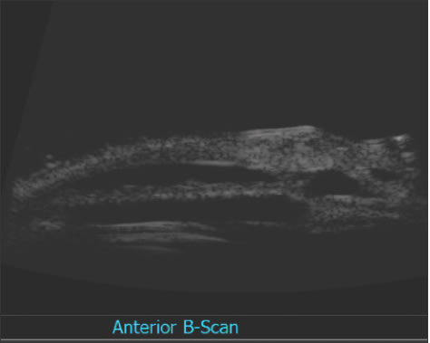 Figure 4. This ultrasound image shows the scleral lake created by expansion of the collagen wick.