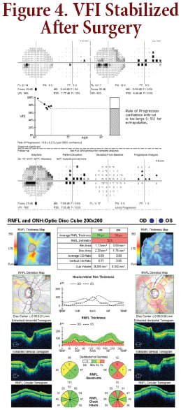 • Patient maintained 20/20 vision and IOP 9-11 mmHg without drops