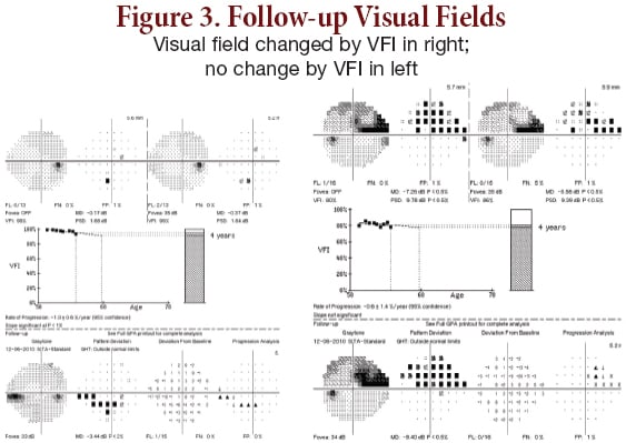 • Right eye followed as ocular hypertensive for several years on travoprost