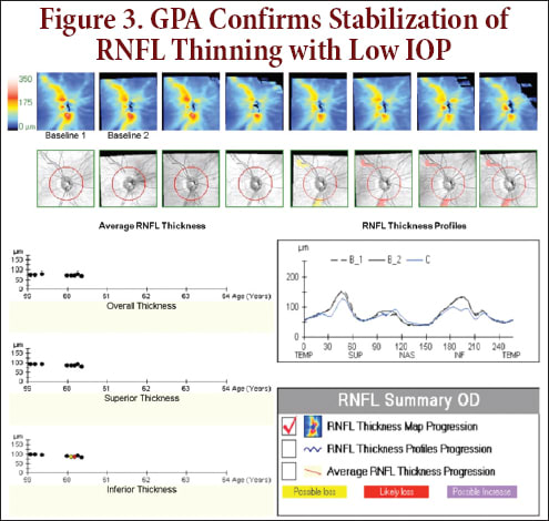 • Treated left eye with travoprost with reduction of IOP to 15 mm Hg; right eye observed
