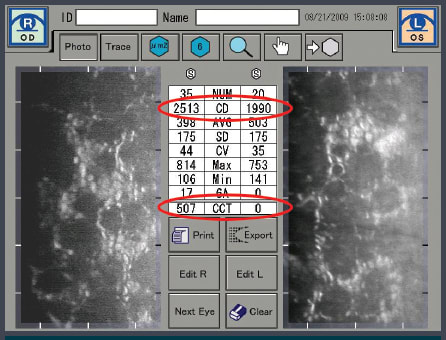 1. Assess every cornea 2. Consider endothelial cell counts in all premium IOL patients 3. Beware of automated cell counts 4. Heed the predictors of decompensation 5. Counsel preoperatively 6. Be careful with presbyopia-correcting implants 7. Take your time in surgery 8. Tailor your approach to the situation 9. Minimize fluid turnover 10. Consider chilled BSS Plus (Alcon) 11. Work “in the bag” 12. Take steps postoperatively ![]() Beware of automated cell counts. ![]() With endothelial disease, cataract surgery is generally done safer, sooner. |