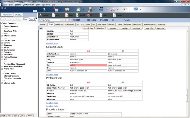 Ophthalmic Imaging Systems offers a customizable chart layout so physicians at a multi-specialty practice can prioritize data for their specific exam needs.