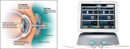 ■ The Lipiview/Lipiflow System, from TearScience, was approved by the FDA in 2011. This novel system8 employs tear interferometry to visualize and measure the thickness of the tear film lipid layer before and following treatment with a “thermal pulsation system” that simultaneously warms the eyelid glands and expresses secretion using an inflatable bladder to compress the lids (Figure 3). Citing a considerable body of literature to support the concept that secretions are more easily expressed from the warmed eyelid, the 12-minute Lipiflow treatment delivers a gentle pressure shown to be more effective than manual lid expression. Study of a small series of patients suggests benefits may persist up to one year, but this data is preliminary.