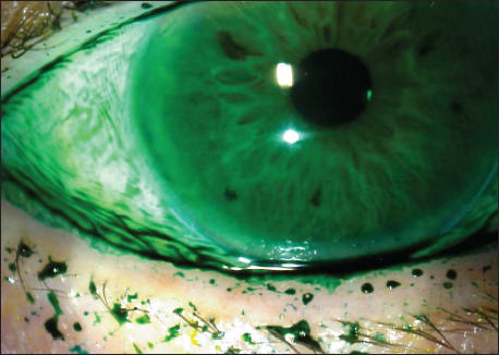 In Figure 2, you will see a postoperative picture of the same patient two weeks after treatment. He now has a continuous tear film and his symptoms are much improved.