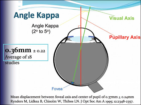 1. Rynders M, Lidkea B, Chisolm W, Thibos LN. Mean displacement between foveal axis and center of pupil of 0.37mm + 0.24mm. J Opt Soc Am A 1995; 12:2348-2357.