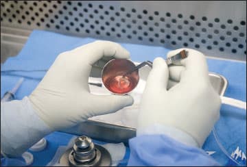 Figure 2. Prepping the tissue to begin the pre-cut procedure. COURTESY OF THE LION'S EYE INSTITUTE FOR TRANSPLANT & RESEARCH