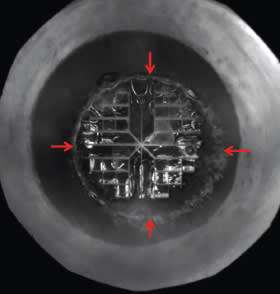 A 5 mm round anterior capsulotomy created by a femtosecond laser.