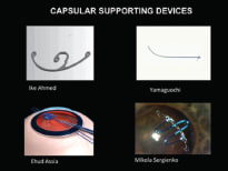 Capsular tension segments (I.Ahmed, 2001), Assia Anchor (E.Assia, 2005) and T-shaped hooks (R.Yamaguchi, 2008) have the main advantage of minimizing the surgical trauma to the already compromised residual zonules (Figure 1). These devices support the capsular bag during the surgery and prevent its dislocation postoperatively. The main disadvantage of these devices is that they can create only focal support of the capsular bag and do not totally restore its equator shape. That is why in many cases their combination with conventional or modified capsular tension rings (CTRs) is mandatory.