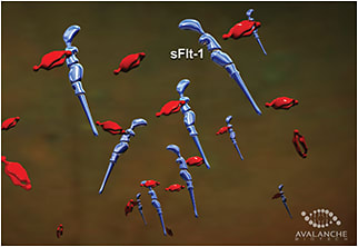 This rendering shows how Avalanche’s therapeutic protein binds to VEGF to eliminate proliferating blood vessels.