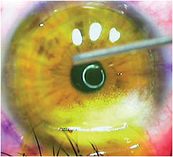 • Accelerated crosslinking. Unlike the standard crosslinking procedure, which involves 3 mW of UVA exposure for 30 minutes, a clinical trial is evaluating a new unit, the KXL System (Avedro, Waltham, Mass.), that would allow for 30 mW and a four-minute treatment. It increases UVA power but decreases exposure time, giving the total desired dose. Powers up to 45 mW are being investigated in other studies. A trial also is under way for Pulsed Accelerated Cross‐linking. As the name suggests, this approach uses pulsed rather than continuous UVA light, with a treatment time of eight minutes. The off- phase of the light allows for more oxygen diffusion which, in turn, may enhance oxygen availability and generate more crosslinking effects.