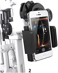 2 A new smartphone adapter from Eyefficient is designed to enable smartphones to be mounted onto a slit lamp to take high-quality images that can be shared with patients or colleagues, or transmitted to EHR instantly. The adapter fits smartphones from 2- to 3.5-inches wide and attaches to slit lamp eyepieces from 1- to 1.8-inches in diameter.