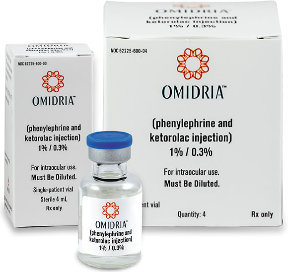 In their July study 2015 published in Clinical Ophthalmology, Lola Elizabeth Lawuyi and Avinash Gurbaxani describe FDA-approved Omidria as a combination phenylephrine/ketorolac injection that “maintains intraoperative mydriasis, prevents miosis and reduces postoperative pain. When miosis develops during cataract surgery, it compromises the visualization of the surgical field and working space for surgeons, which may cause posterior capsular tear and associated vitreous loss, longer surgical time and postoperative inflammation.”