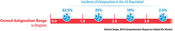 For surgeons who want to venture into or increase the percentage of premium IOLs in their practice, toric IOLs are a great place to start. For one thing, they provide a huge sales opportunity. Although toric IOLs represent the fastest growing segment of the premium IOL market, the penetration rate is still low compared to their potential; nearly 40% of the population has more than 1.0 D of astigmatism (Figure 1).1