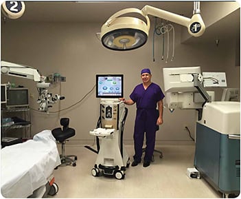 Initially, I’d planned to place the laser outside of my operating rooms, but after looking at the total overall space in my facility, I decided it would fit most ergonomically in one of the operating rooms. With upgrades to the platform, the LenSx Laser is a very ergonomic system. My nurse walks the patient into the operating room, where he or she lies down on the portable bed, which is already positioned near the laser. The total treatment time from when the patient lies on the bed through instillation of the anesthetic drop, placement of the lid speculum, docking, treating and undocking, is approximately two and a half minutes. The patient is then moved on the same bed about 4 feet to where the Centurion Vision System is located for completion of the procedure. This extra time is then compensated for by not having to manually create incisions or perform the capsulorhexis and further by some reduction in phacoemulsification time and energy as the nucleus is partially pre-treated by the laser. Of greater importance once again is the fact that I’ve seen patient-pleasing surgical outcomes, and fewer refractive touch-ups.