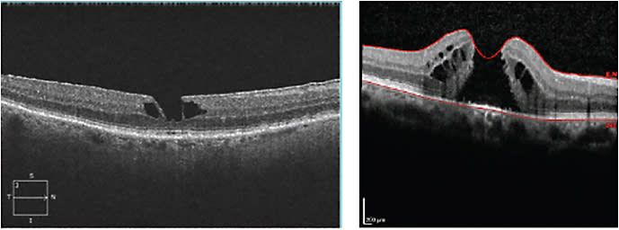 Figure 9. Left: Lamellar macular hole. Right: Full-thickness macular hole.