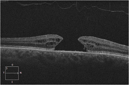 Figure 2. Spectral-domain OCT of a full-thickness macular hole.