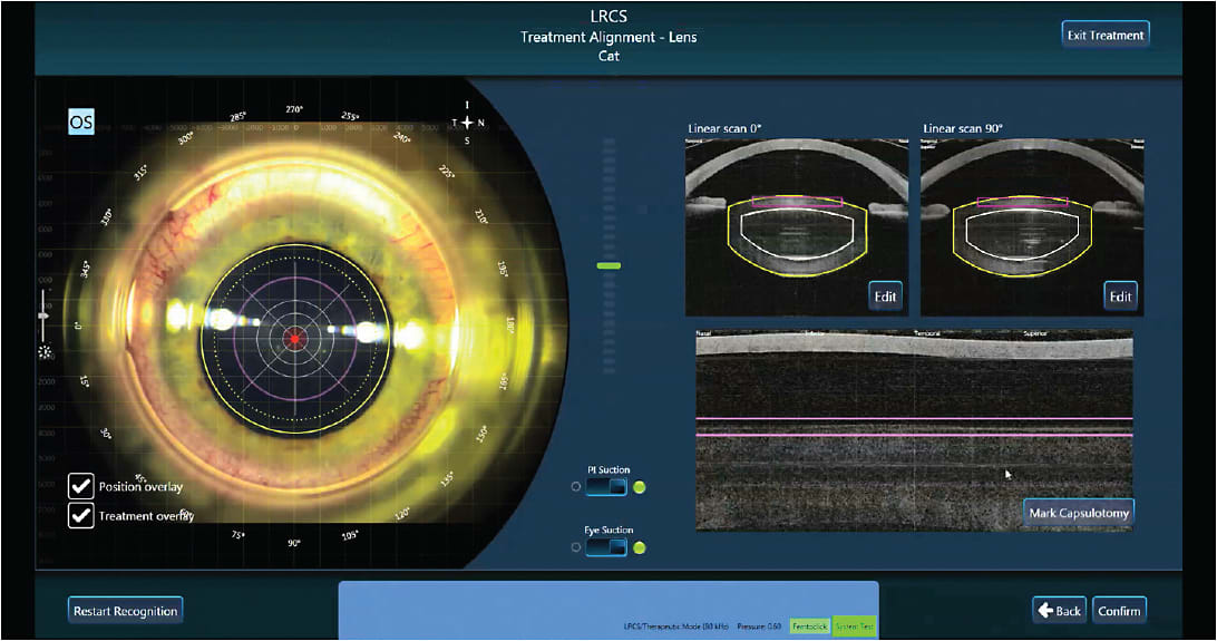 The redesigned surgeon interface displays lens fragmentation treatment alignment.