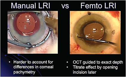 Dr. Koch notes that although a good peer-reviewed study comparing manual blade incisions to those made by femtosecond laser has yet to be published, he believes there is a benefit to performing corneal relaxing incisions with the laser. He adds that in his own practice he uses the laser for astigmatism correction in three different ways.