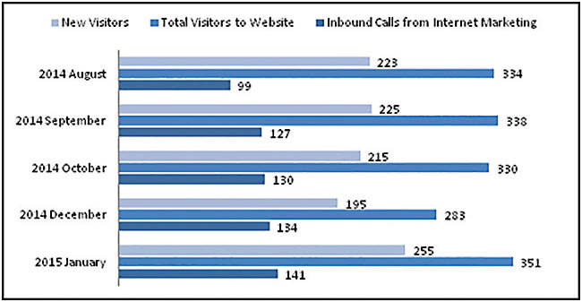 As the figures in Table 1 demonstrate, month after month, Dr. Salib’s website is showcased before hundreds of unique, first-time visitors drawn from surrounding areas. The impact of this sustained and targeted Internet exposure reflects in the bottom line of Dr. Salib’s practice, which he says continues to receive new patients every month (See Figure 3).