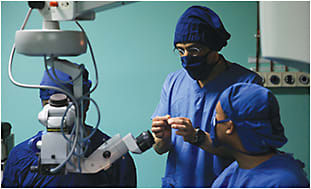 Dr. Pravin Dugel (center) works with Tilganga Retina Team just before second earthquake hits.