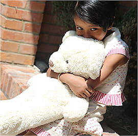 Little girl outside Tilganga clutches a dear friend minutes after the second earthquake.