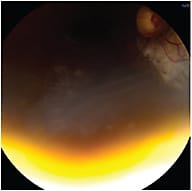 Q. What aberrations/artifacts are included and how do you correct them? | A. Lid artifact is present. If it was the iris, the artifact would be a bluish tint. A white crescent around the picture indicates the camera is too far away and not in focus. |