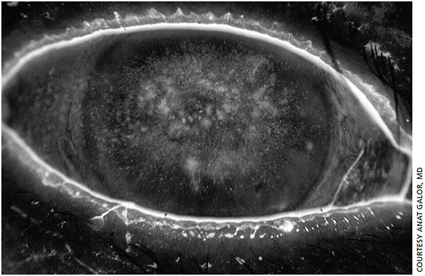 Even cosmetic practices are a risk. For example, the patient may be sleeping in their contact lenses or not cleaning them properly. Cynthia Matossian, MD, of Matossian Eye Associates, says, “I look for or ask about lash enhancements, lash embellishments, or false lashes — all of which can lead to ocular surface disease that can be asymptomatic initially.”