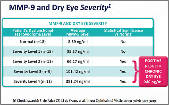 Figure 1: MMP-9 levels in the tear film help to identify dry eye severity.