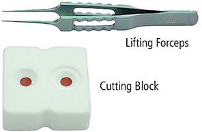 SOLUTION #3: The John DMEK Base, Cutting Block, Scroller, Separator, and Lifting Forceps are designed to make it easy to cut and harvest the delicate donor Descemet’s membrane as a single disc without damaging it.