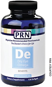PRN sells its products, including Dry Eye Omega Benefits, exclusively through doctors instead of on the retail market, in part because it doesn’t want to be confused or compared with supplements, says Dr. Gross.