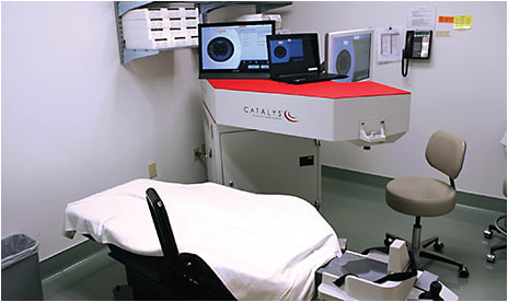 Figure 2. Newport Bay Surgery Center has a fixed-bed laser in a dedicated laser room with an excellent nursing staff controlling the flow to the operating rooms. The laptop computer on top of the laser records every LACS case and a monitor displays the surgery for observers.