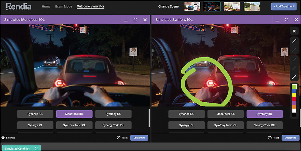 In talking to patients, Dr. Hamilton relies on an online tool called Rendia (Rendia Inc.). The platform, he says, provides animations and simulations of IOLs that can help patients understand their options (Figure).