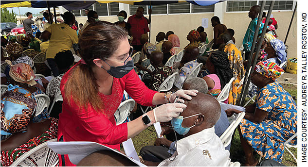 “She was the only cornea surgeon for a catchment area of a couple million people. So I went there with corneas and with some instruments and was teaching her and her colleagues. I was struck by how great the need was,” Dr. Talley Rostov says.